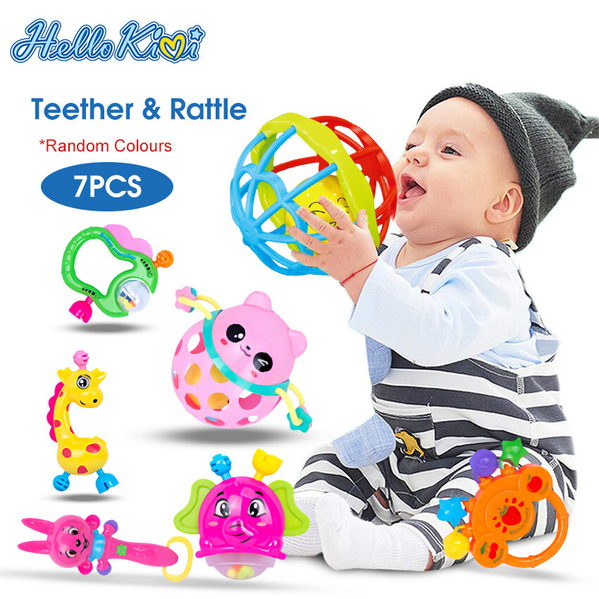 HelloKimi 3PCS/7PCS Baby Rattles Newborn Toys Set Newborn Soft Shaker Grab Rolling Rattle Ball Hand Shaker Bells Toy Spin Shaking Bell, Gift Set for Infants, Early Educational Toys for Newborn Infant
