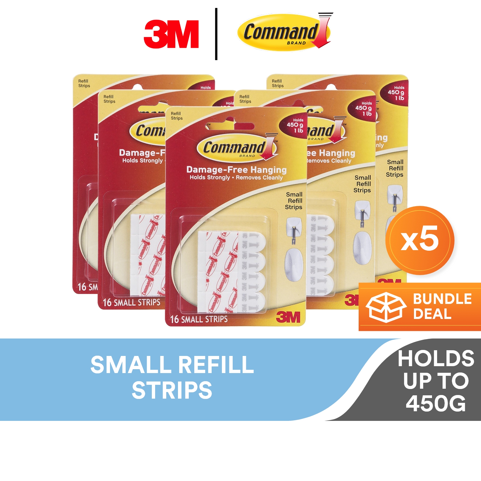 3M Command White Small Refill Strips, 17022P, 16/Pack, Holds Up to 450g, Damage Free, Holds Strongly