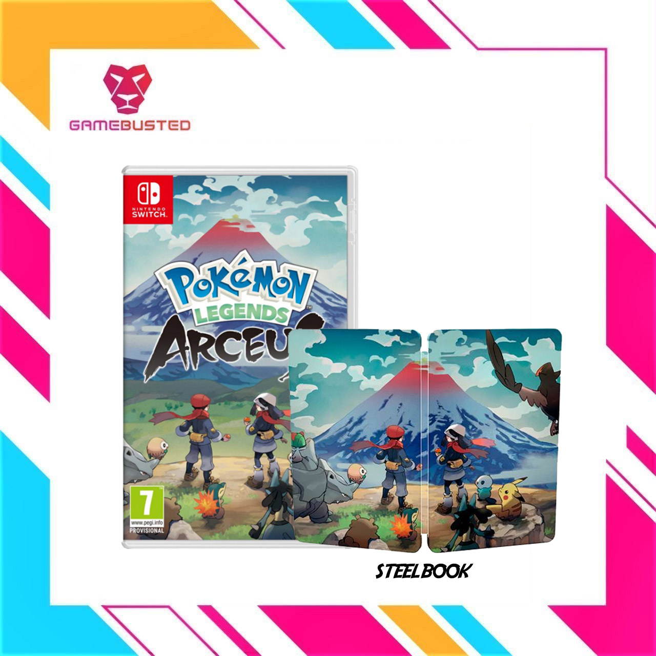 Action meets RPG as the Pokémon series reaches a new frontierGet ready for a new kind of grand, Pokémon adventure in Pokémon Legends: Arceus, a brand new game from Game Freak that blends action and exploration with the RPG roots of the Pokémon series. Explore natural expanses to catch Pokémon by learning their behavior, sneaking up, and throwing a well-aimed Poké Ball. You can also toss the Poké Ball containing your ally Pokémon near a wild Pokémon to seamlessly enter the battle. This new angle on Pokémon gameplay will deliver an immersive, personal experience brought to life by both Pokémon and humans.Travel to the Sinnoh region of oldExplore the Sinnoh region from the Pokémon Diamond Version and Pokémon Pearl Version games, but long before the events of those titles. In this era, the Sinnoh region is filled with Pokémon living in harsh environments. Set out to create the region’s first Pokédex and discover the secrets of a long-gone time. At the start of your adventure, you can choose Rowlet, Cyndaquil, or Oshawott as your dependable partner. Along the way, a mystery surrounding the Pokémon known as Arceus will begin to unfold.