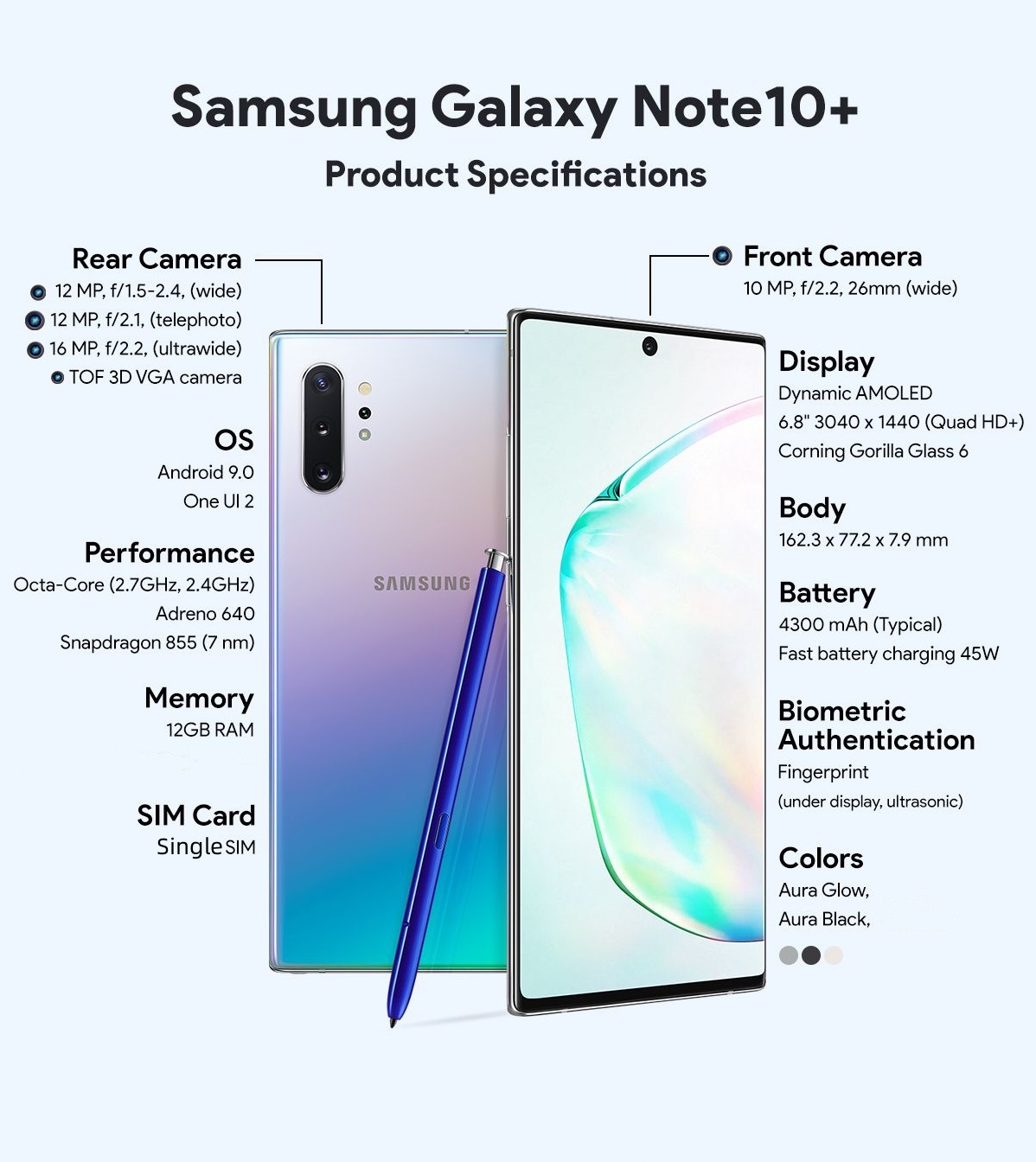 Brand New Samsung Galaxy Note 10+ Note 10 Plus / SNAPDRAGON 855 Local Seller Warranty 6 months Export Set