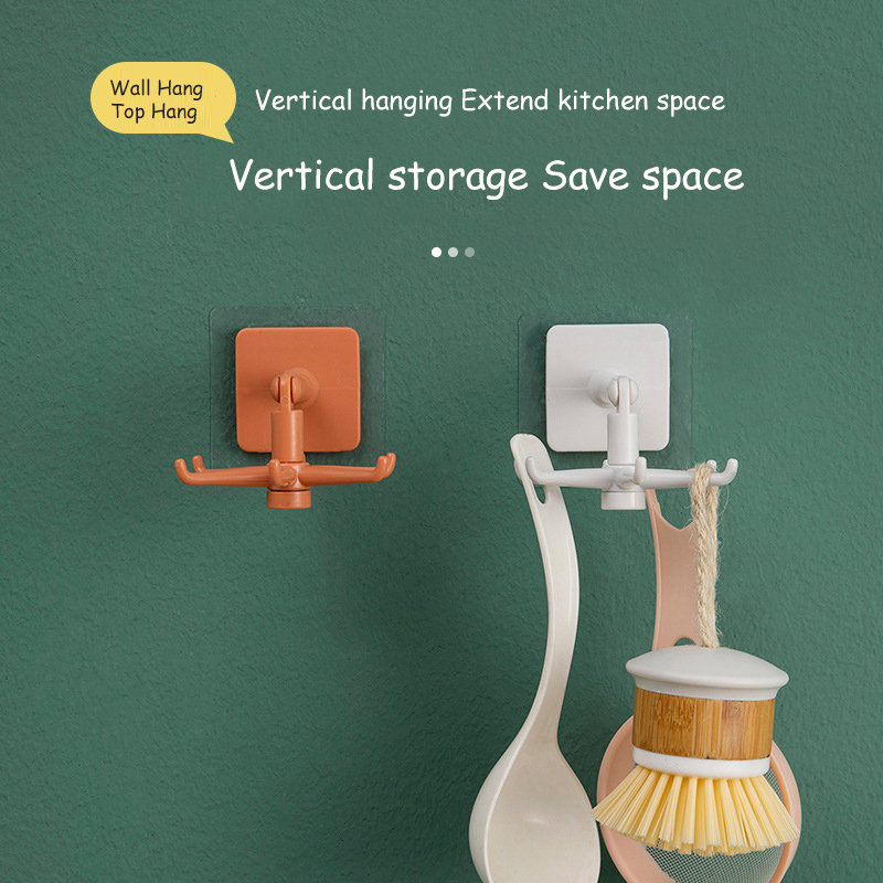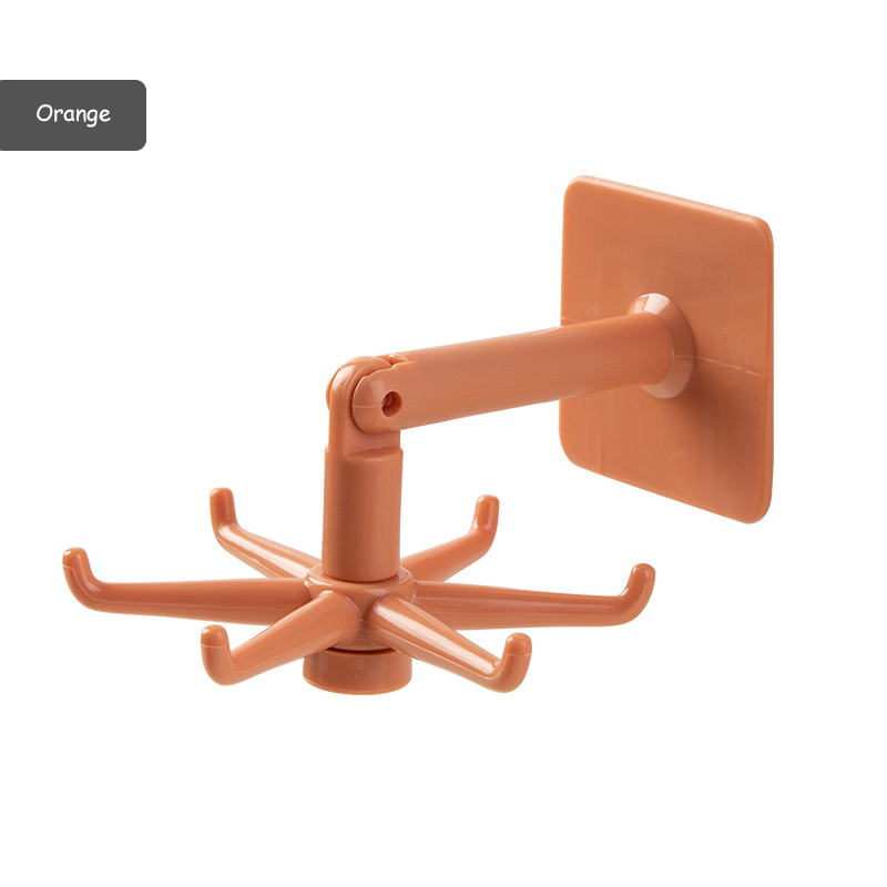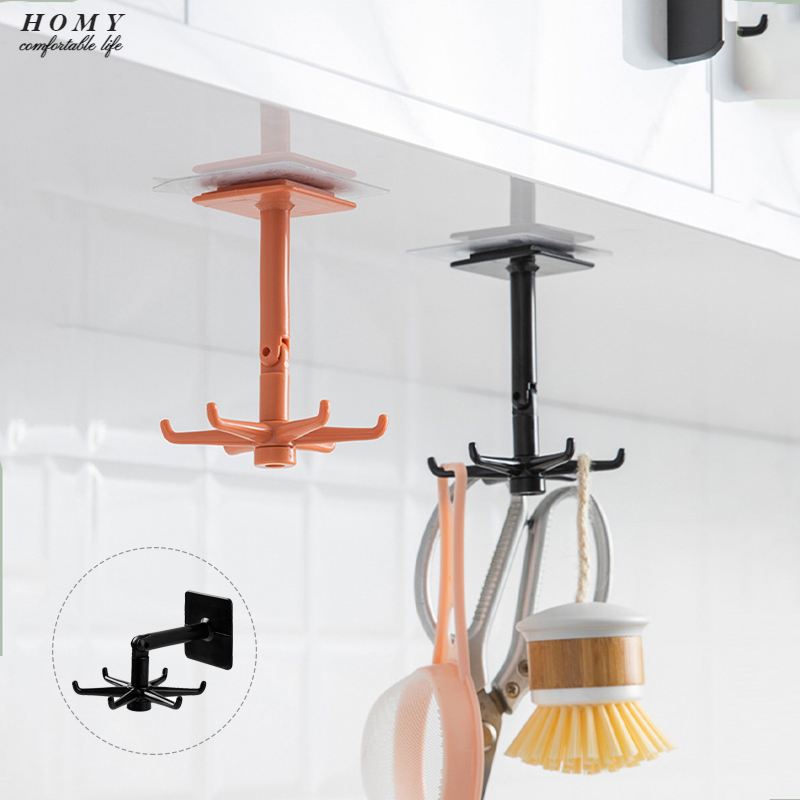 Homy 360° Rotatable 6-Hooks Hanger Kitchen Small Hook Wall-mouted Hook Self-Adheisve Hook Rack for Kitchen Bathroom Adjustable Multifunctional Kitchen Hooks