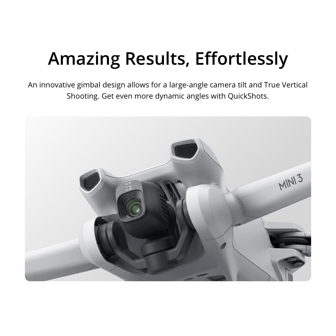 DJI Mini 3 - Camera Drones | Under 249g | 4K HDR Video | Extended Battery Life | True Vertical Shooting | 38kph Level 5 Wind Resistance | (Drone Registration Not Required)