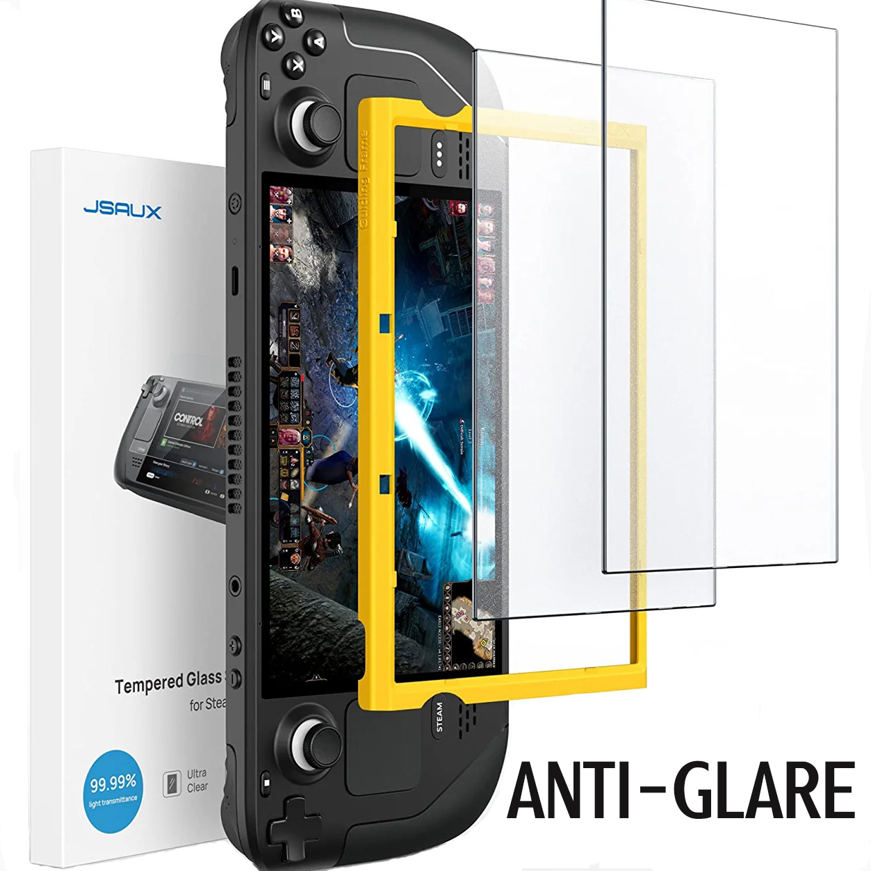 JSAUX premium anti-glare matte texture finish removes annoying harsh reflections, allowing you to see the screen clearly even under light. Specifically designed for Valve Steam Deck Gaming Console. Also, the package will come with a guiding frame that allows you to easily install the screen protector to your Steam Deck without having to align the edges repeatedly.