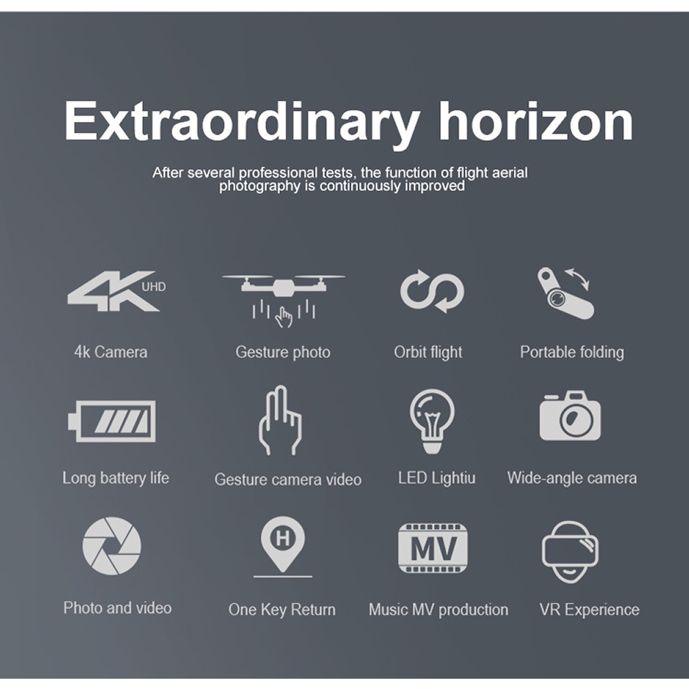 This drone quadcopter in small size, with foldable arms, easily fit in your pocket and easy to carry. You do not have to constantly worry about the drones stability and can concentrate on capturing your image better. Support One Key Automatic Return, with one click, the drone will return to its point, no matter where it was flying.