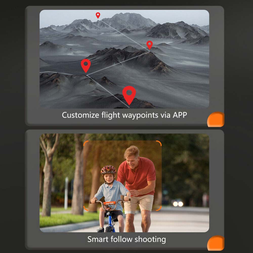 Aerial photography APP function: one-key takeoff/one-key landing/up/down/left/right turn/smart obstacle avoidance/smart follow/up and down ESC camera/360° roll/headless mode/fast/slow gear/photograph/video/switch dual Camera/face/gesture recognition automatic photo/gravity sensor/trajectory flight/positioning flight/one-key return to home.