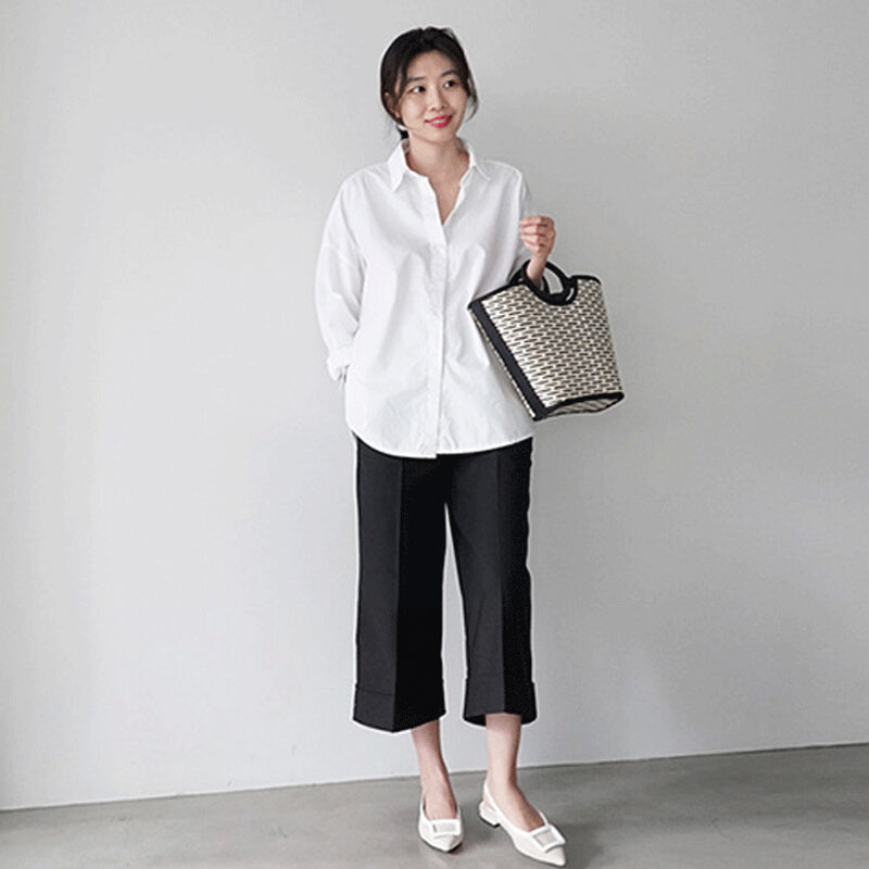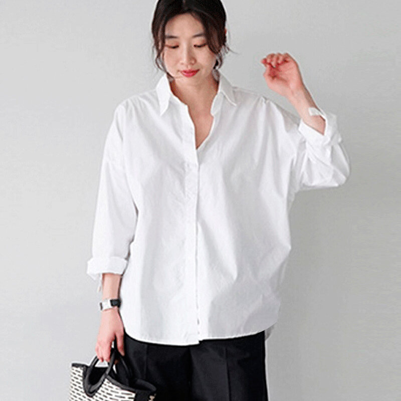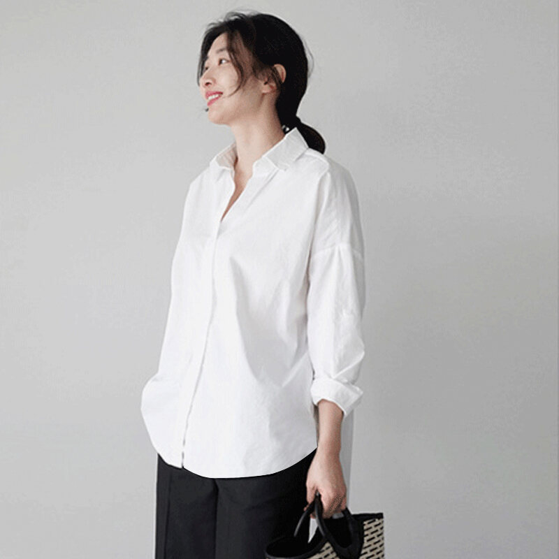 Loose Spring Korean-Style Cotton Instagram Shirt with Long Sleeves